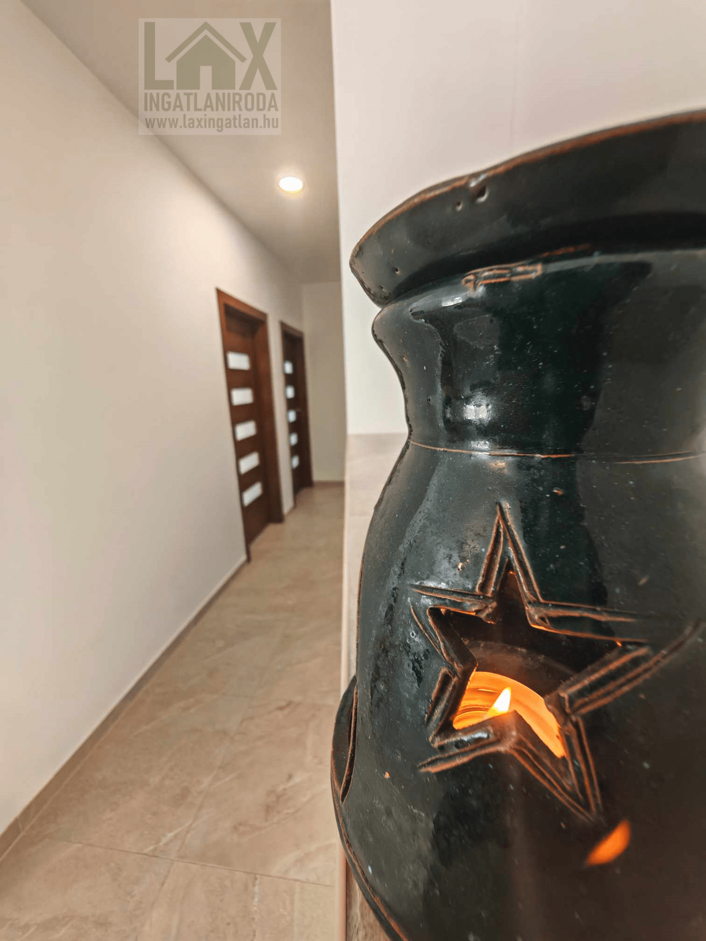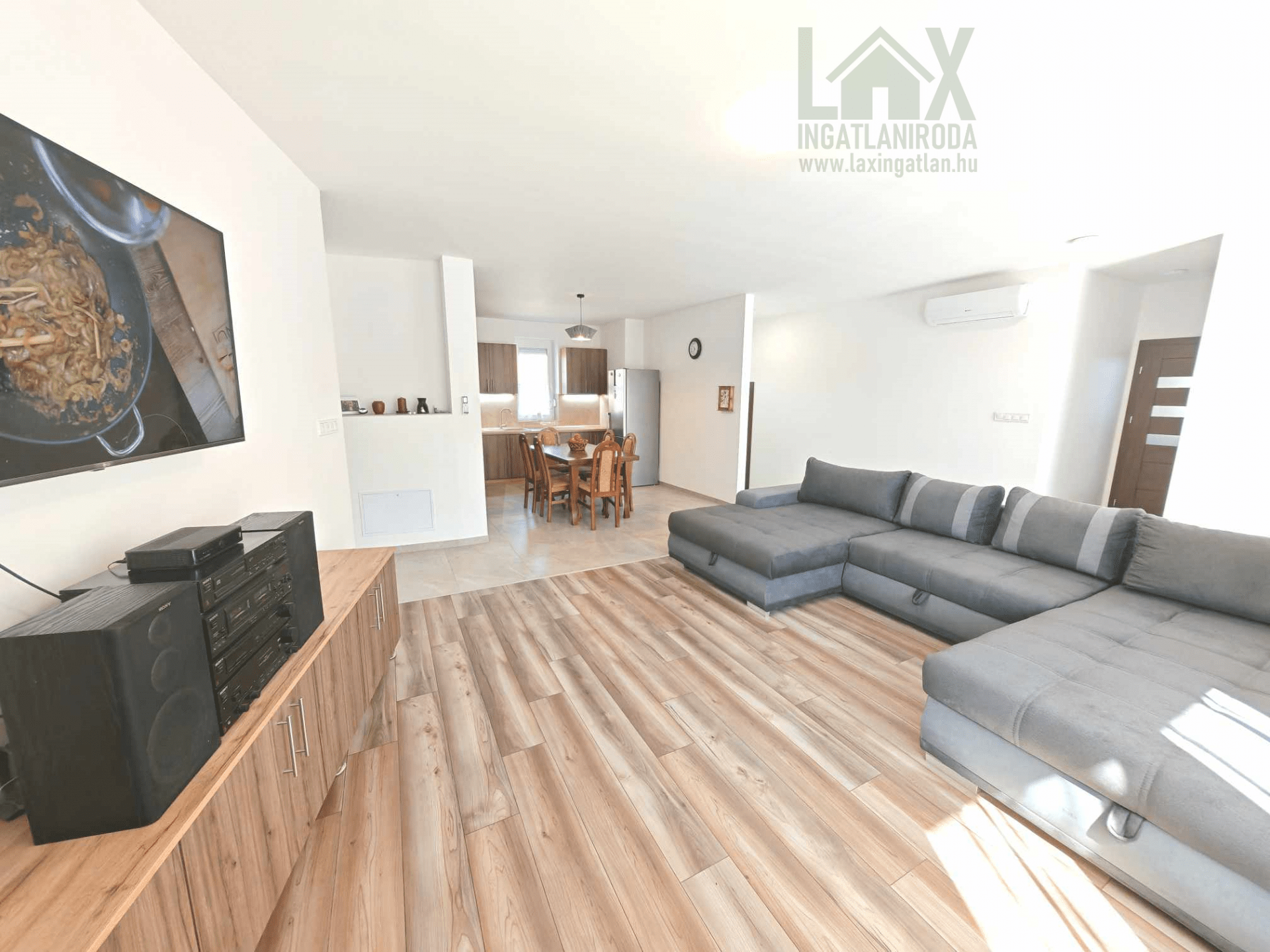 A lakóház 128 nm-es, ebből 110 nm-es a lakótér, 18 nm-es a garázs. Minden szegletében padlófűtéses. Kivételesen jó elosztása van, egy több, mint 50 nm-es amerikai konyhában van lehetősége a családnak gyűjteni a legszebb közös pillanatokat, 2 fürdőszobában (az egyikben dupla mosdó, wc, kád és zuhanyzó is, a másikban csak zuhanyzó) wellness hangulatban testet és lelket felfrissíteni, a 3 hálószobában pedig a személyes elvonulásban feltöltődni. A sokak számára fontos külön wc is megtalálható.