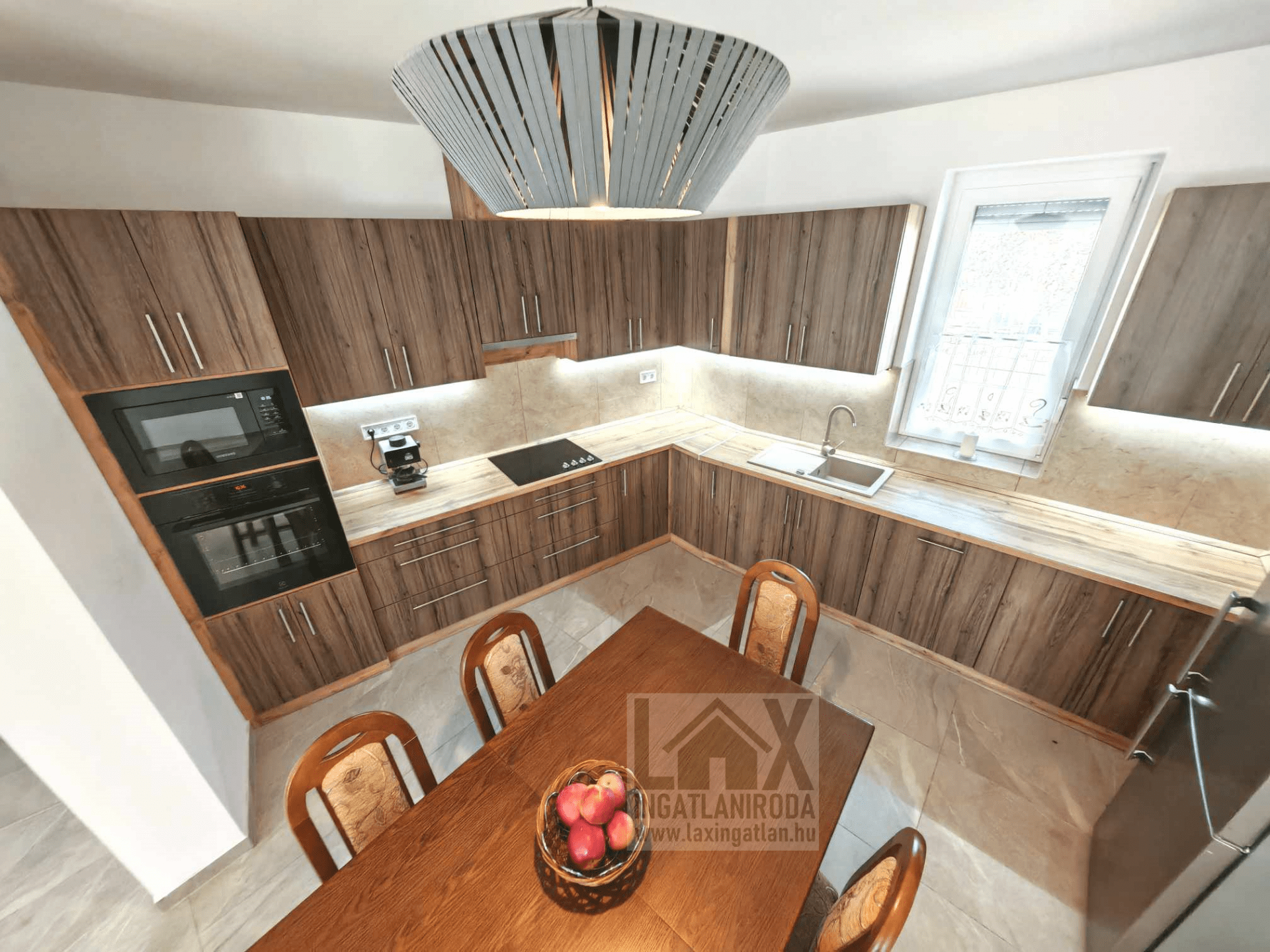 Az ingatlanban asztalos által készített beépített bútorok vannak, a gránit mosogatós és csapteleppel felszerelt konyha teljes egészében gépesített:
