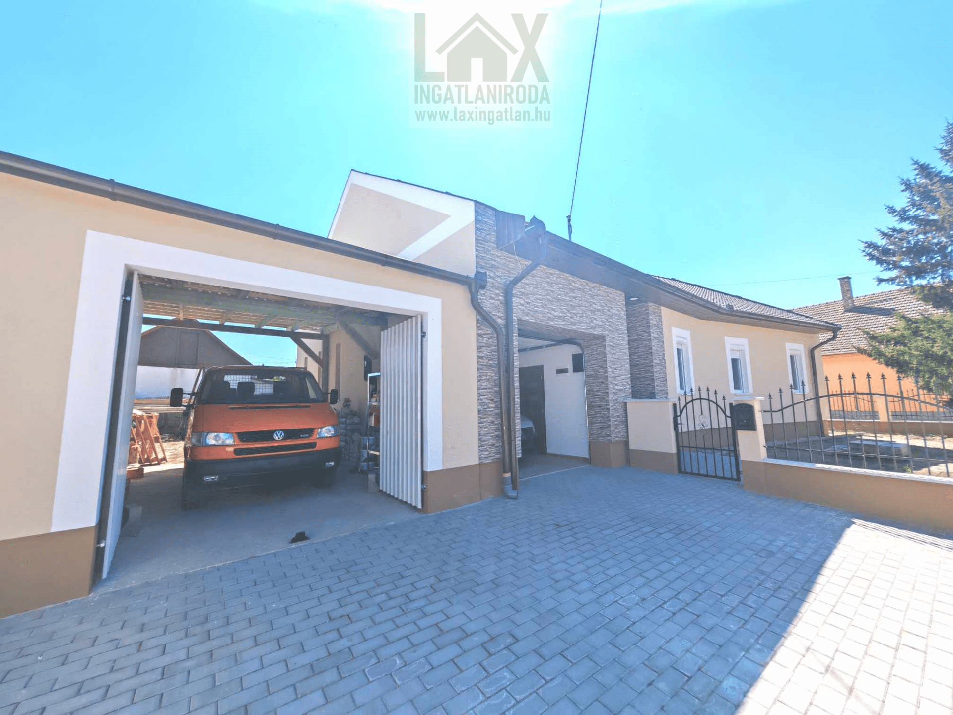 - parkolás: ingatlan előtt kb. 65 nm-es térkövezett rész, beépített garázs padlófűtéssel, fedett kocsibeálló