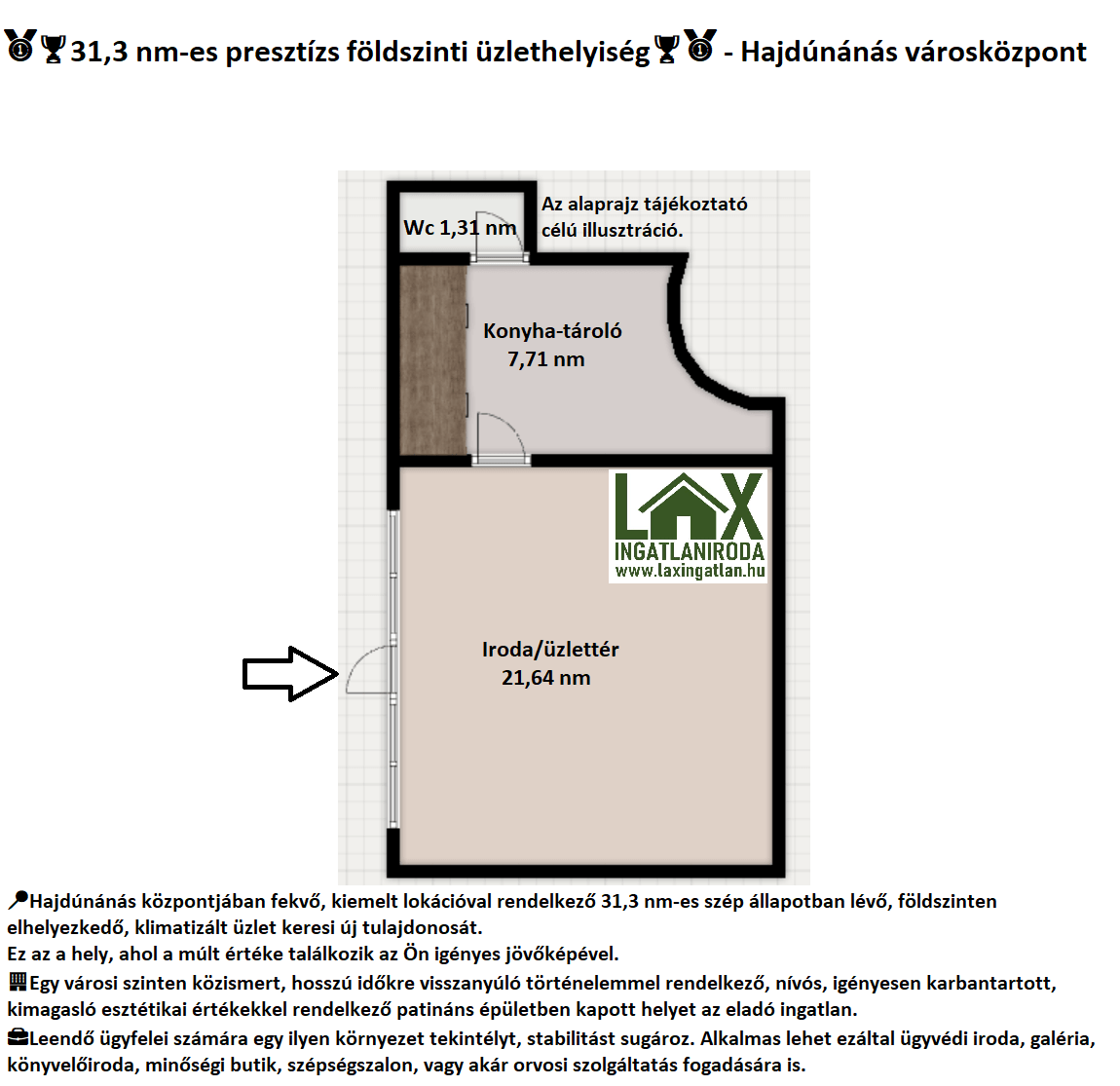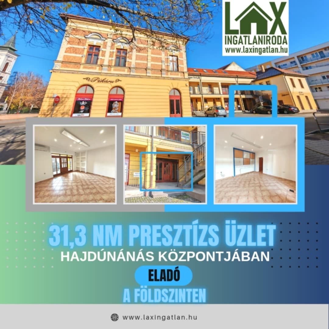 31,3 nm-es presztízs FÖLDSZINTI üzlethelyiség - Hajdúnánás városközpont